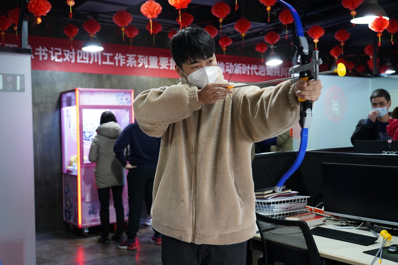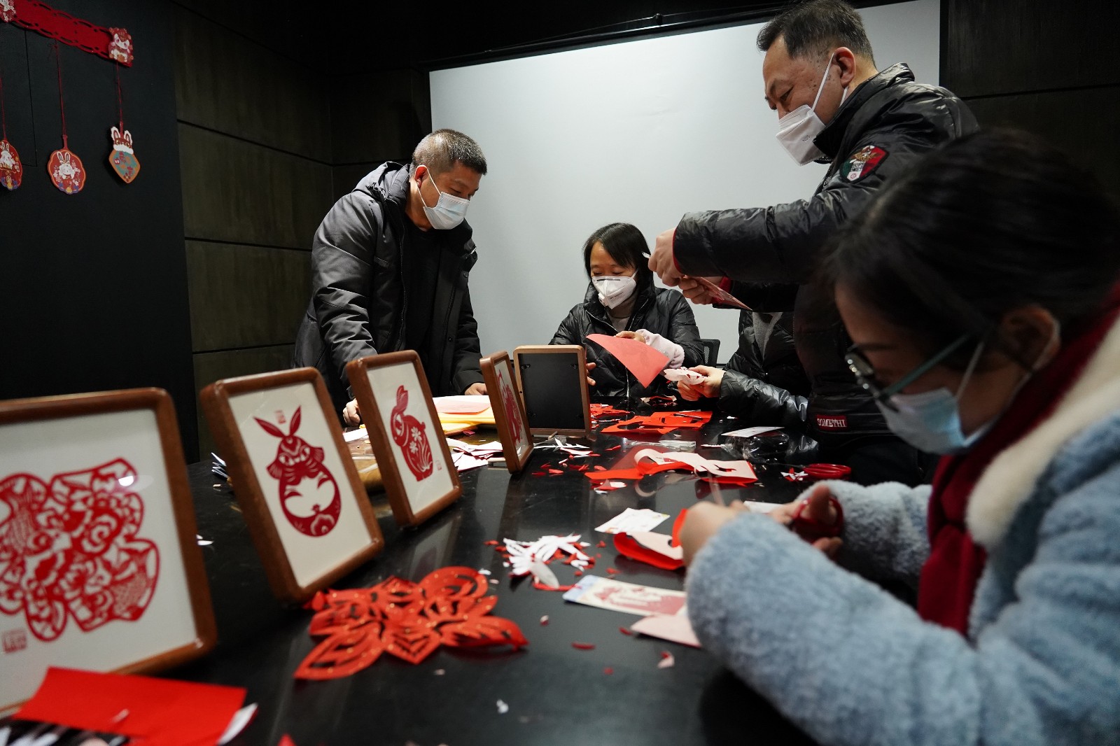 玉兔賀歲迎新年,生肖兔的形象自然成為新年中不可或缺的元素。在非遺體驗區和新年祈福區,傳統剪紙、春聯、燈籠技藝與生肖兔的結合,更是把中華傳統文化體現得淋漓盡致。精美剪紙活靈活現、揮毫潑墨筆走龍蛇,大家紛紛展示自己“得意之作”,表達辭舊迎新、接祥納福的美好祝愿。而游戲互動區的“萌力十足娃娃機”“穿越火線”“戰弓烈焰” 等趣味游戲,不僅讓大家得到了身心放松、精神愉悅,也展現著川投能源人的團結協作和良好風貌。
