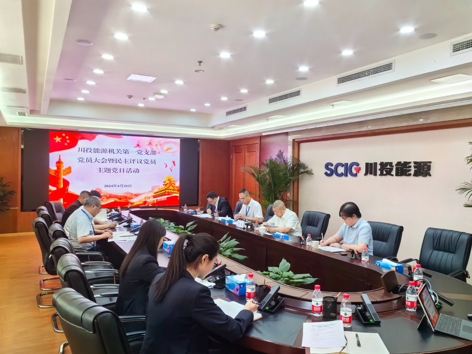 2024年4月26日下午,川投能源機關第一黨支部召開黨員大會,集中學習習近平總書記近期重要講話精神,增補選舉支部委員會委員,開展2023年度民主評議黨員等工作。根據黨員領導干部雙重組織生活制度要求,川投能源黨委書記、副董事長、總經理楊洪,董事會秘書魯晉川以普通黨員身份參加會議,支部全體在家黨員(含預備黨員)共11人參會。