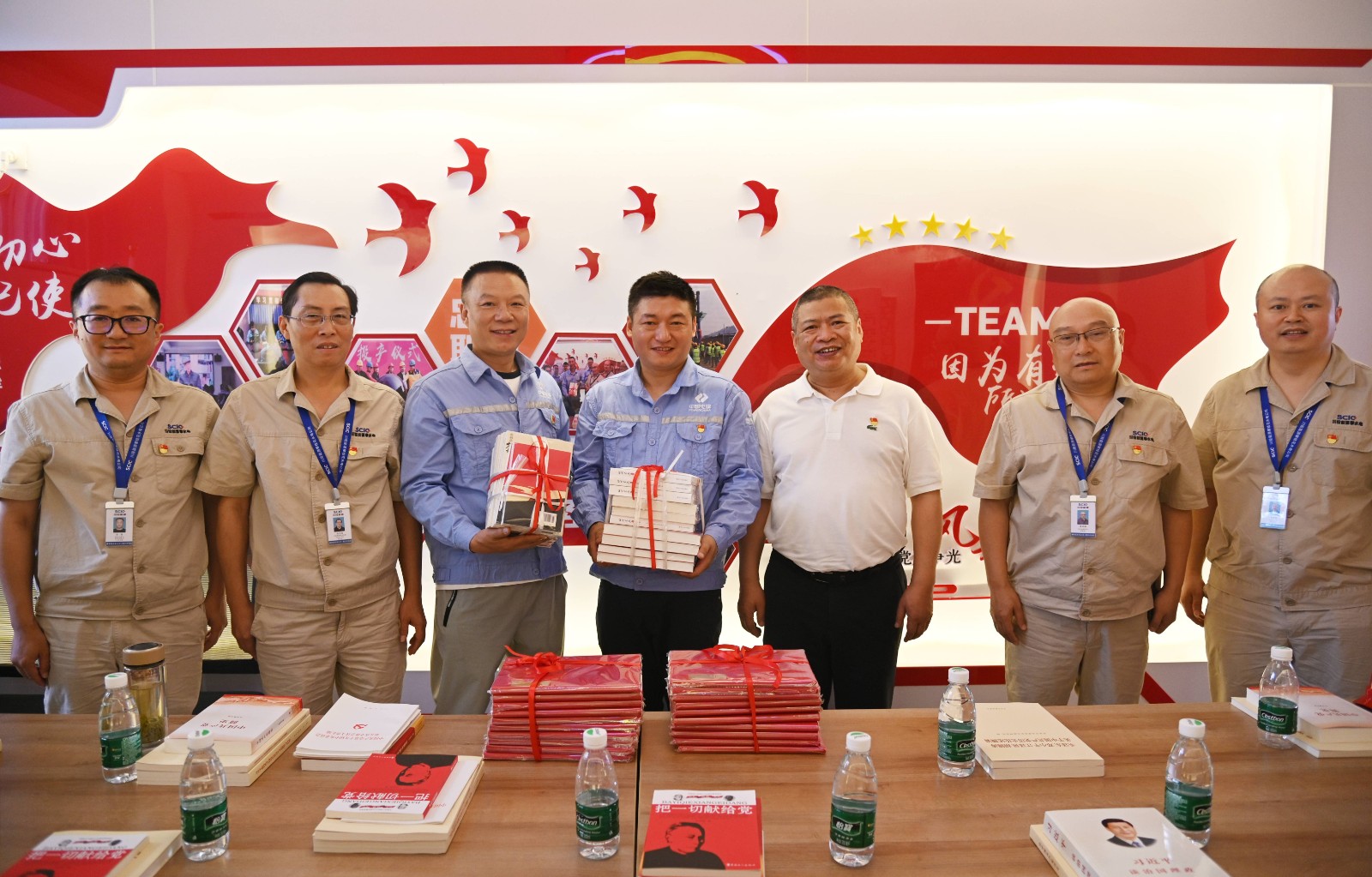 在銀江水電站項目建設現場,楊洪一行了解了目前項目工程進展、施工安全、環境保護的總體情況,對康家溝渣場、銀江大橋等施工現場進行了檢查,仔細檢查了防汛防災隱患治理實施進度及汛期值班值守工作等情況。同時按照川投能源黨委開展黨史學習教育調研工作安排,楊洪一行來到攀水電公司黨總支聯建支部水電七局銀江項目部黨支部,參觀了黨員活動室,查閱了黨史學習教育相關記錄資料,為工程一線的黨員同志們送去了《紅巖》《恰同學少年》《中國共產黨四川歷史十講》等黨史學習書籍以及黨史學習筆記本,并與黨員代表展開深入交流。楊洪強調,銀江水電站是川投能源自己承建的項目,業主與各參建單位的合作都要秉承“契約精神”,共同完成今年大江截流獻禮目標。今天為各位帶來了“精神食糧”,希望大家在抓好工程建設的同時抓好黨史學習教育,通過學習黨史,牢記水電人的初心,完成建好銀江的使命。