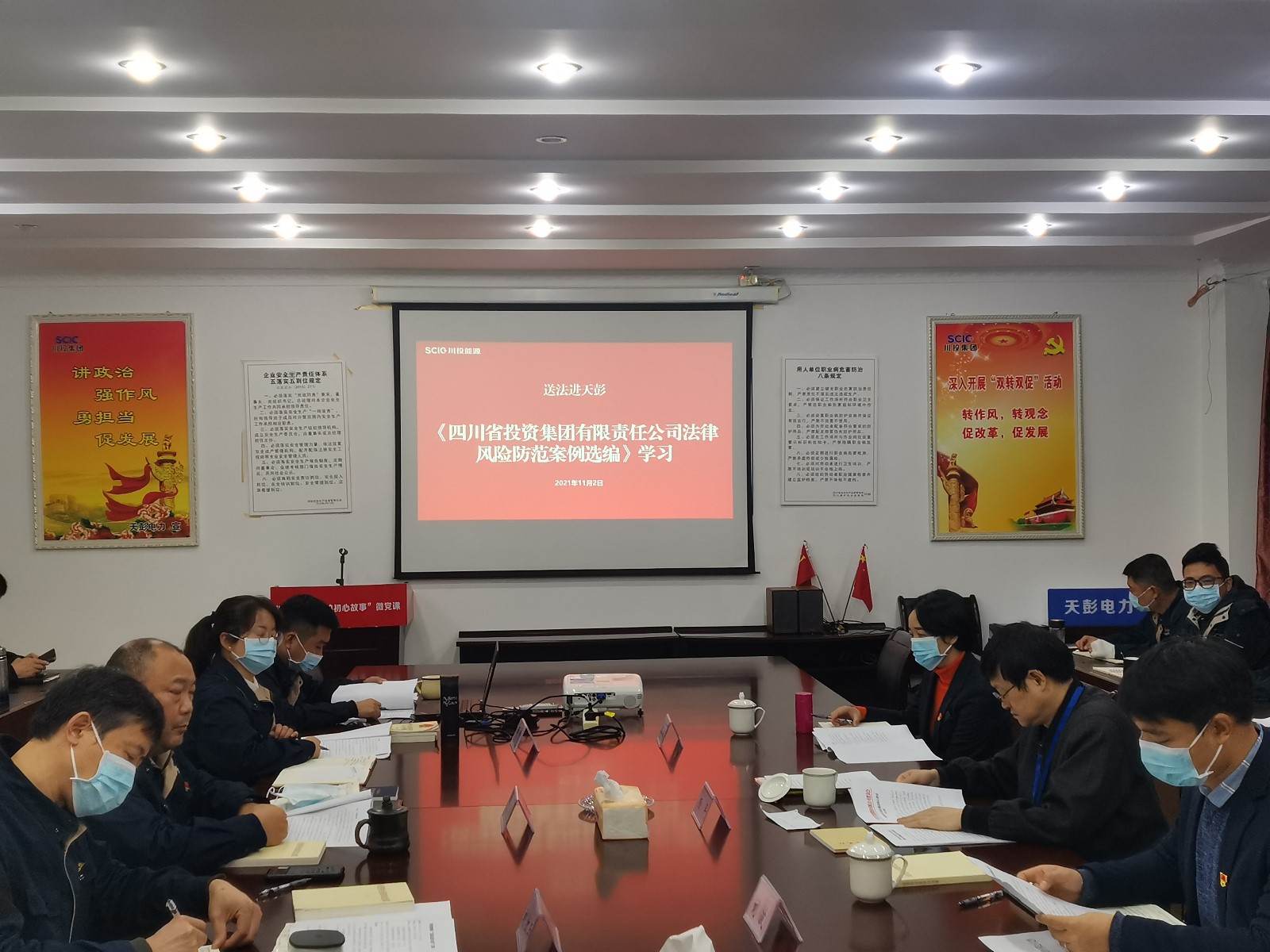 按照川投能源關(guān)于開(kāi)展以案學(xué)法、以案促改活動(dòng)的部署安排,11月2日,川投能源黨委委員、副總經(jīng)理、總法律顧問(wèn)楊平率隊(duì)來(lái)到天彭電力,以現(xiàn)場(chǎng)宣講方式“送法進(jìn)天彭”。天彭電力經(jīng)營(yíng)班子、黨員干部和關(guān)鍵崗位人員參加了活動(dòng)。