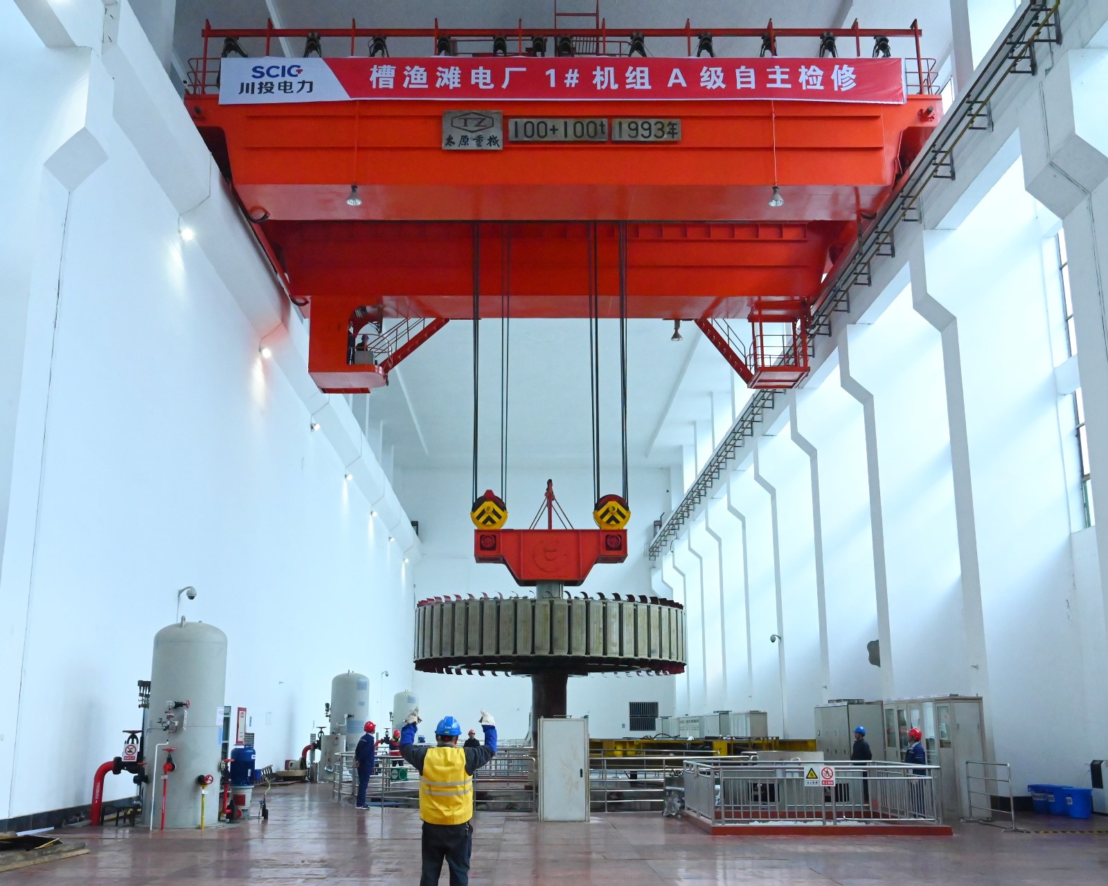 槽漁灘電廠按計劃開展了1#機組大修,2021年12月1日開工,2002年2月15日機組成功并網發電,檢修工期僅僅用了65天。參檢人員提前編制發電機轉子、轉輪吊裝方案,明確人員職責,檢查并調校行車、吊具,規劃行徑路線,在檢修團隊通力協作下,均一次性安全順利吊出。2#、3#機組C修以及1#主變小修、2#主變大修也于4月5日全部完工;目前正持續推進線路保護改造工作。