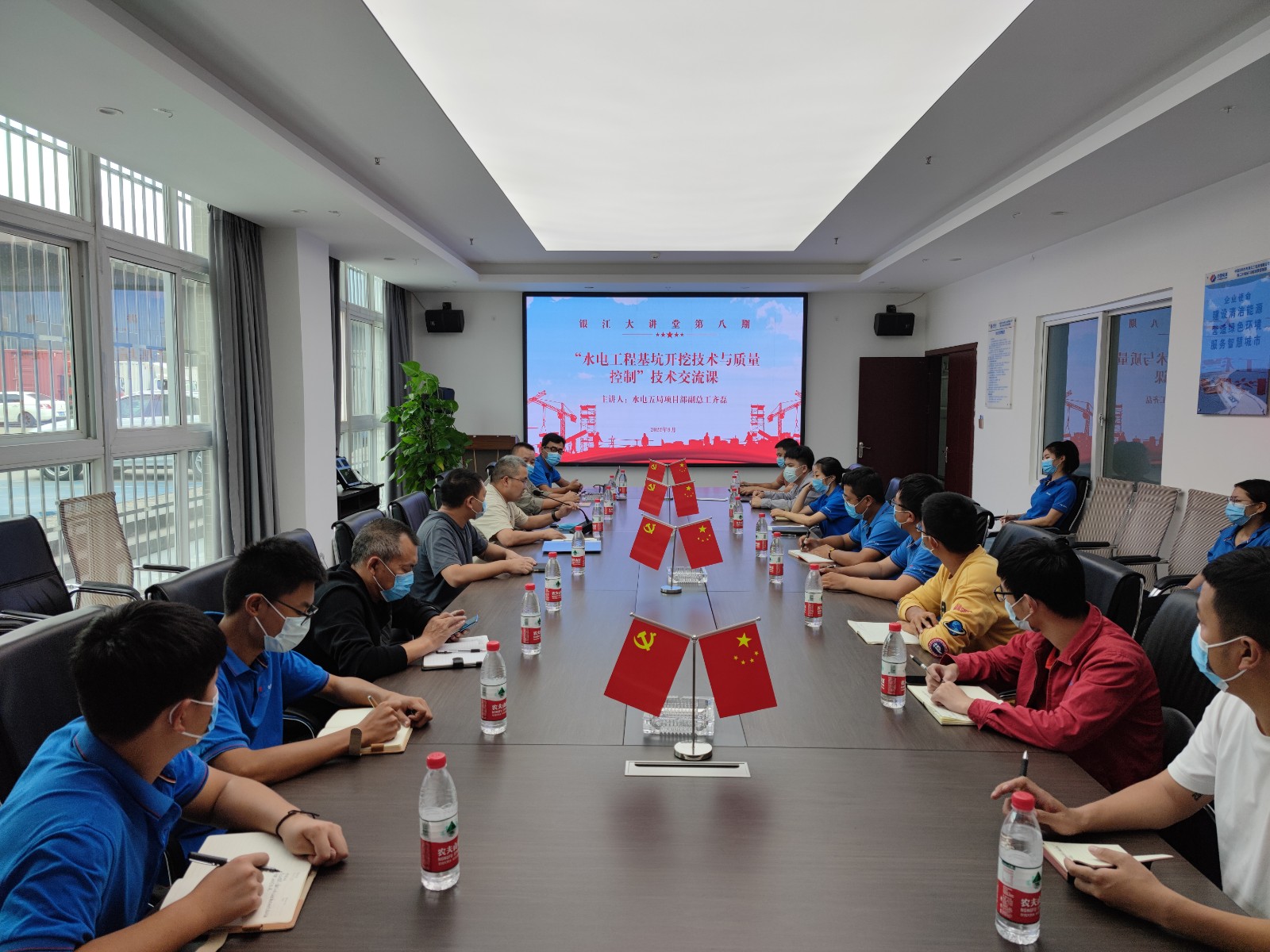 按照活動安排及疫情防控要求,公司于9月24日利用銀江大講堂的舞臺,邀請水電五局項目部副總工齊磊,給各參建單位相關人員開展了“水電工程基坑開挖技術與質量控制”技術交流,從基坑開挖技術與質量控制兩個方面,詳細講解了機械破巖、爆破破巖的方法及其適用條件和優缺點,并從現場質量控制出發,講解了質量要點和質量驗收控制重點。在交流課的最后,齊磊結合基坑的工程特點和地質情況,分析了創建邊坡樣板工程的重點和難點,各參建單位就如何提高工程質量及創建樣板工程進行了充分討論,提出了若干解決辦法,并共同發出了積極爭創樣板工程的號召。