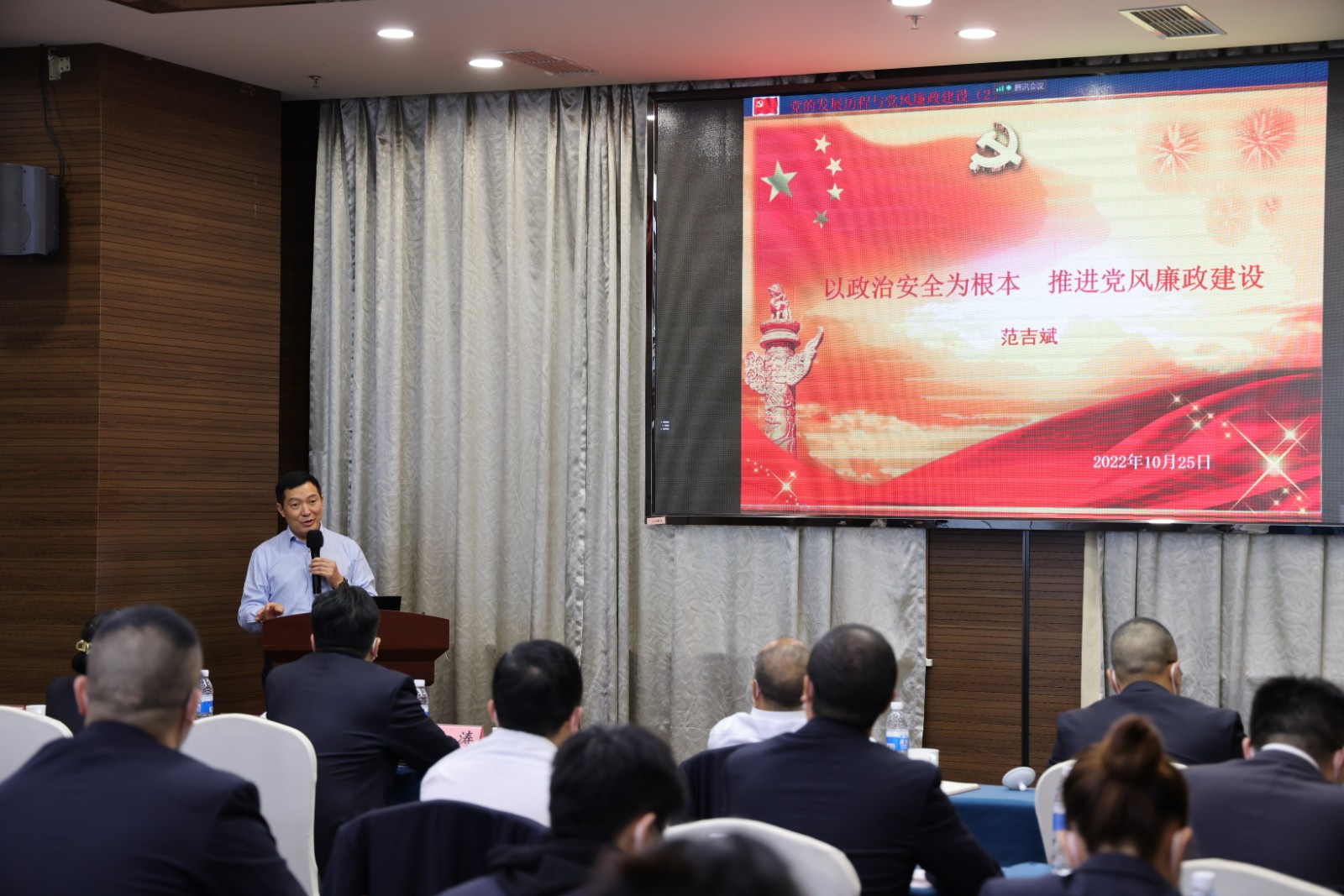 公司領導班子成員、全體黨員分別在主會場、分會場參會,會議嚴格遵守疫情防控各項規定。