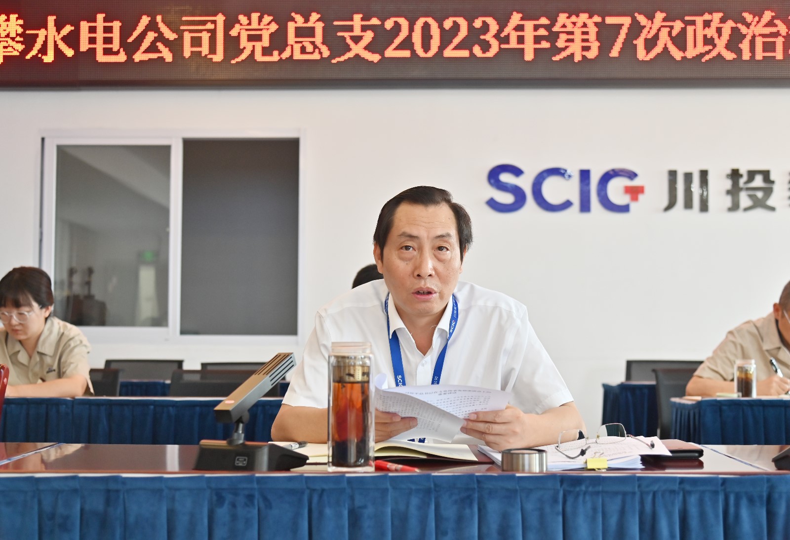 6月27日,攀水電黨總支在2620會議室召開了2023年第7次政治理論學(xué)習(xí)(擴(kuò)大)會議,會議由川投能源副總經(jīng)理、攀水電公司黨總支書記、董事長徐孝剛主持,黨總支政治理論學(xué)習(xí)會成員、各部門負(fù)責(zé)人、其他黨員、統(tǒng)戰(zhàn)對象、入黨積極分子共30余人參加學(xué)習(xí)。本次學(xué)習(xí)主要包括第一議題學(xué)習(xí)、上級指示精神、國企改革、安全環(huán)保、防汛減災(zāi)、廉政警示教育、保密工作、主題教育專題研討八個(gè)部分內(nèi)容。