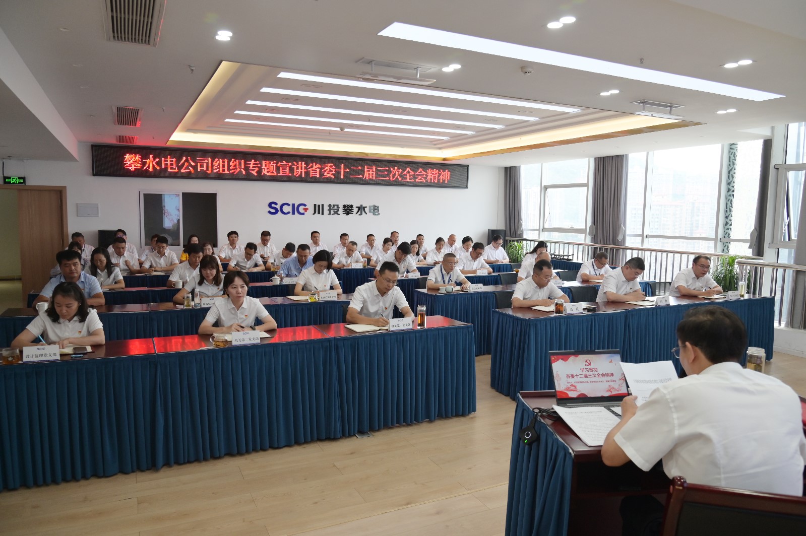 為進一步引導(dǎo)廣大職工深入學習貫徹省委十二屆三次全會重大決策部署,激發(fā)大家干事創(chuàng)業(yè)、堅定推動高質(zhì)量發(fā)展的精氣神,8月19日下午,川投能源副總經(jīng)理、攀水電公司黨總支書記、董事長徐孝剛進行省委十二屆三次全會精神專題宣講。公司全體黨員、職工,各參建單位黨員職工代表共計45人參加此次宣講會。