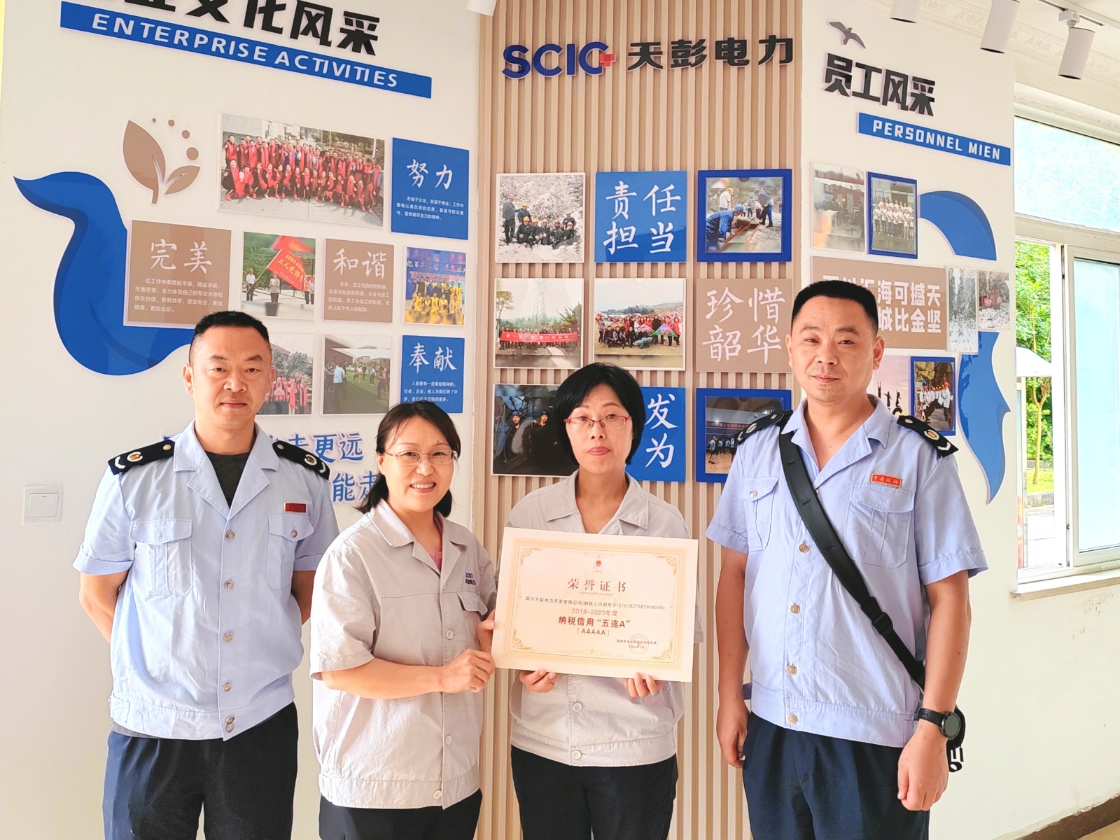 6月11日,天彭電力喜獲殊榮:國家稅務總局彭州市稅務局向我公司授予了“彭州市‘2019-2023年度納稅信用五連A’”榮譽證書,這是稅務機關對我公司誠信納稅、守法經營的肯定和表彰。