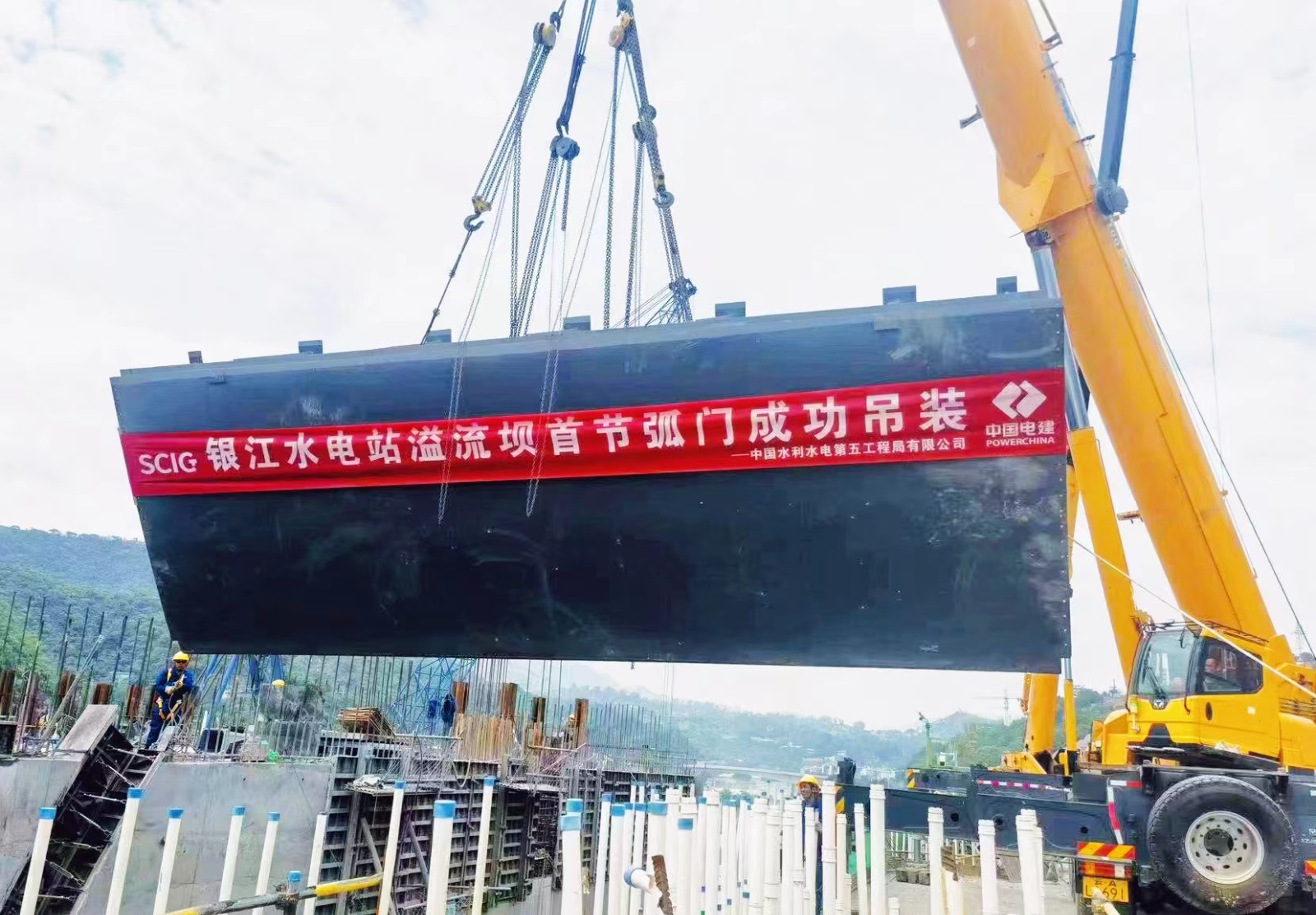 【攀水電公司】銀江水電站首節弧形工作門吊裝成功