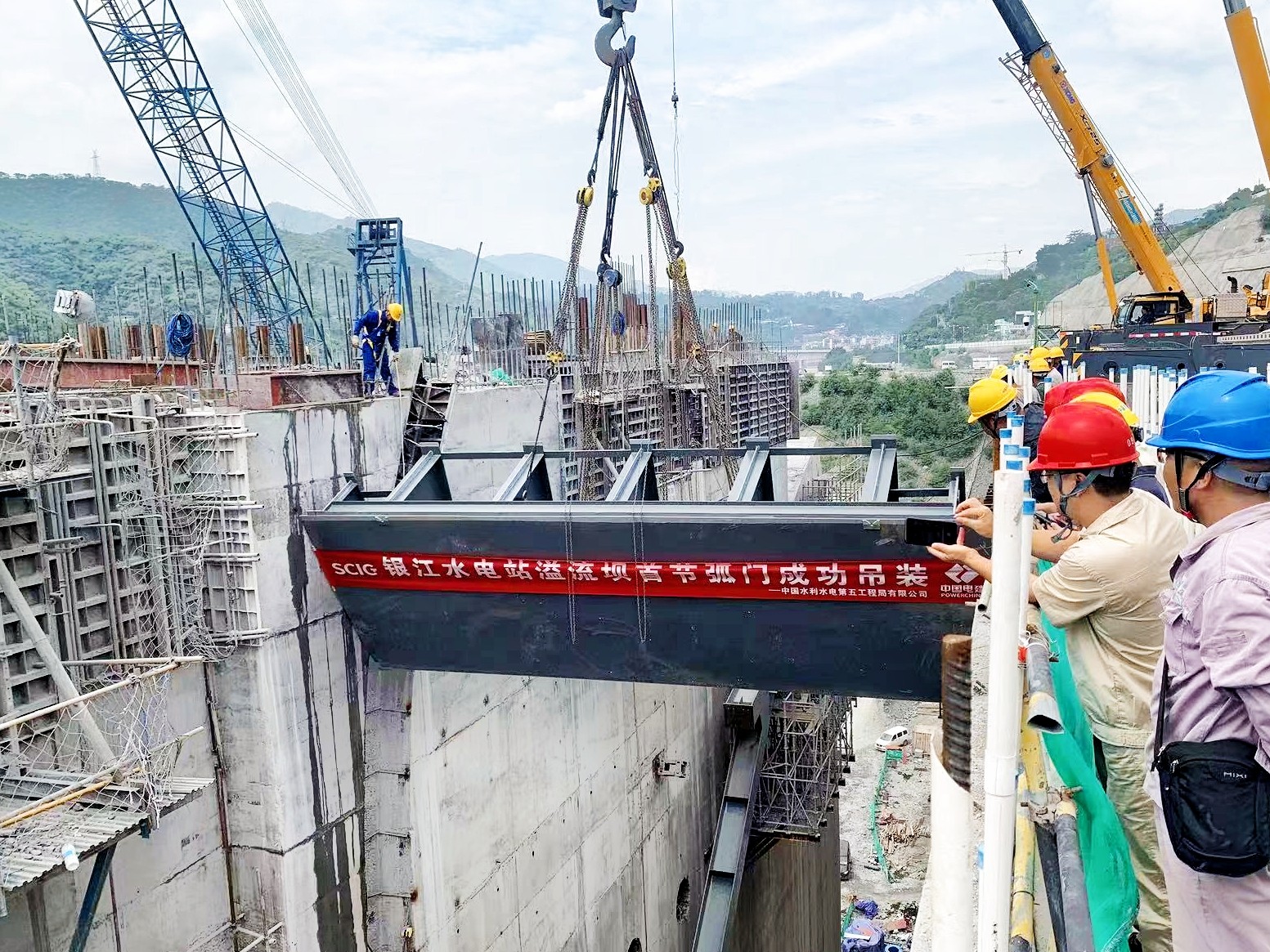 7月22日,正值銀江水電站開工建設五周年紀念日之際,工程建設再傳捷報,首節弧形工作門吊裝成功,標志著銀江水電站閘門安裝高峰期正式拉開序幕。