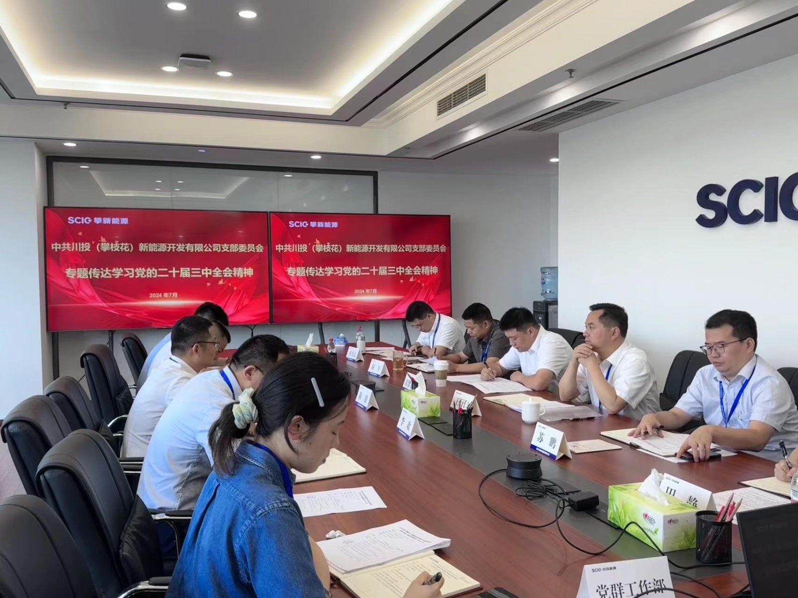 7月31日,攀新能源公司黨支部召開2024年第7次政治理論學習(擴大)會,專題傳達學習《中國共產黨第二十屆中央委員會第三次全體會議公報》,領會黨的二十屆三中全會精神。公司黨支部書記、董事長王行仁主持會議并領學。