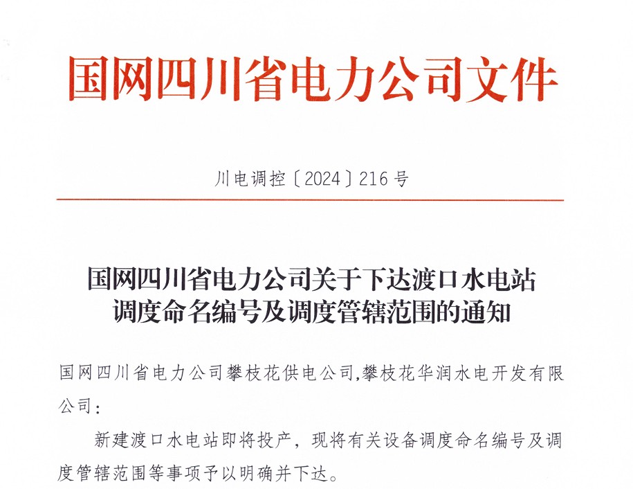【攀水電公司】銀江水電站獲調度命名“渡口水電站”