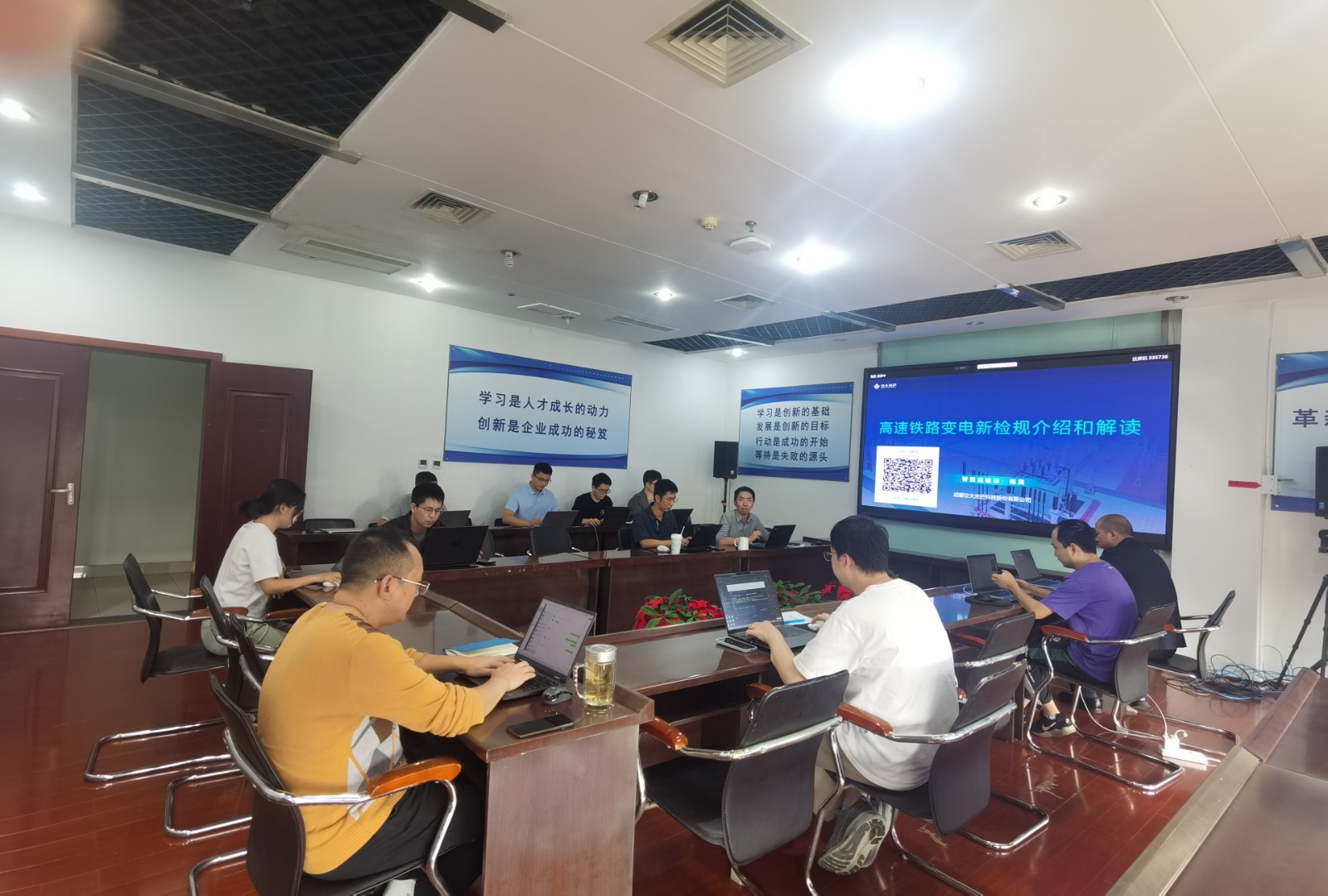 楊昊詳細解讀了新檢規的出臺背景、具體內容和重大意義。他指出,新檢規落實國鐵集團黨組關于牽引變電所無人化的工作部署,適應信息化、智能化發展進程,將牽引變電所運行管理、運維修試、應急保障等規則予以完善,是交大光芒高鐵供電智能運維系列產品的根本遵循。他強調,研發中心要深入研究對標新檢規,對現有運維產品進一步智能升級改造,研發更符合時代需求的、更加智慧的實時監測和科學診斷系統,以新質生產力賦能中國高鐵進一步提升供電可靠性。