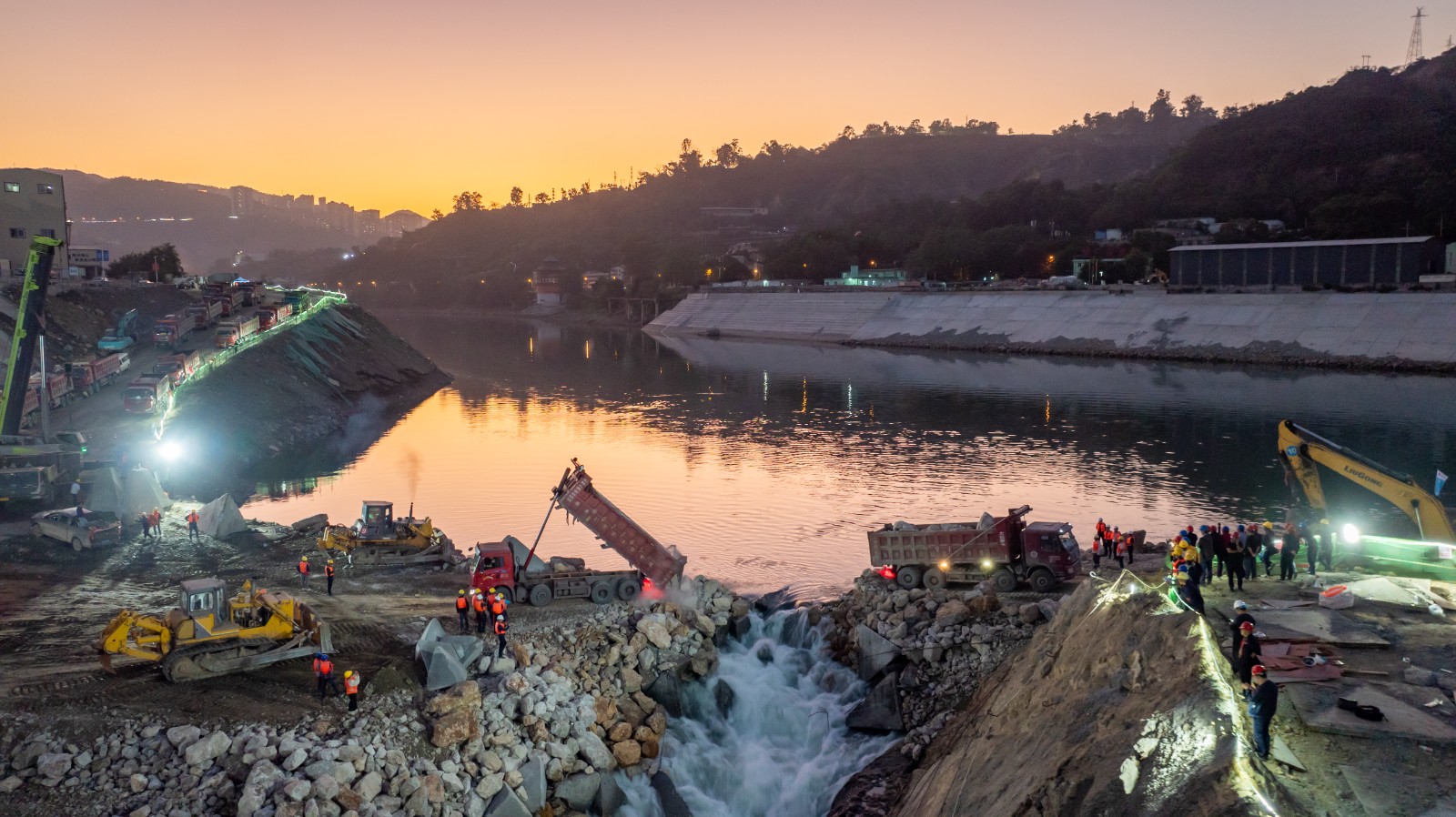 11月18日19時(shí)08分,隨著最后一車(chē)石料拋投進(jìn)戧堤龍口,金沙江銀江水電站成功實(shí)現(xiàn)導(dǎo)流明渠截流,銀江大壩張開(kāi)懷抱,迎接金沙江水歸位,攀枝花人民翹首以盼的“銀江湖”即將變?yōu)楝F(xiàn)實(shí)。