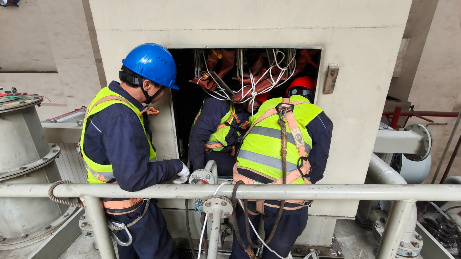 因上游電廠突發(fā)情況,導(dǎo)致本次停電時(shí)間延誤、有效作業(yè)時(shí)間縮短,本次檢修任務(wù)面臨嚴(yán)峻考驗(yàn)。3月13日,腳基坪電廠迅速組建了一支由6名技術(shù)骨干組成的黨員先鋒隊(duì)。在檢修工作中,充分發(fā)揮黨員的先鋒模范作用,以身作則,沖鋒在前,用實(shí)際行動詮釋了黨員的責(zé)任與擔(dān)當(dāng)。主動加班加點(diǎn),相互協(xié)作,密切配合,共同攻克了一個(gè)又一個(gè)技術(shù)難關(guān),確保了檢修工作的順利進(jìn)行。同時(shí),結(jié)合檢修現(xiàn)場實(shí)際情況,提出了一系列切實(shí)可行的優(yōu)化方案,有效提升了檢修效率和質(zhì)量。黨員先鋒隊(duì)隊(duì)員們精神抖擻,即便面對海量操作任務(wù),也絲毫不減嚴(yán)謹(jǐn)態(tài)度,共完成2項(xiàng)檢修項(xiàng)目、3項(xiàng)技術(shù)改造、全廠電氣設(shè)備預(yù)防性試驗(yàn)。
