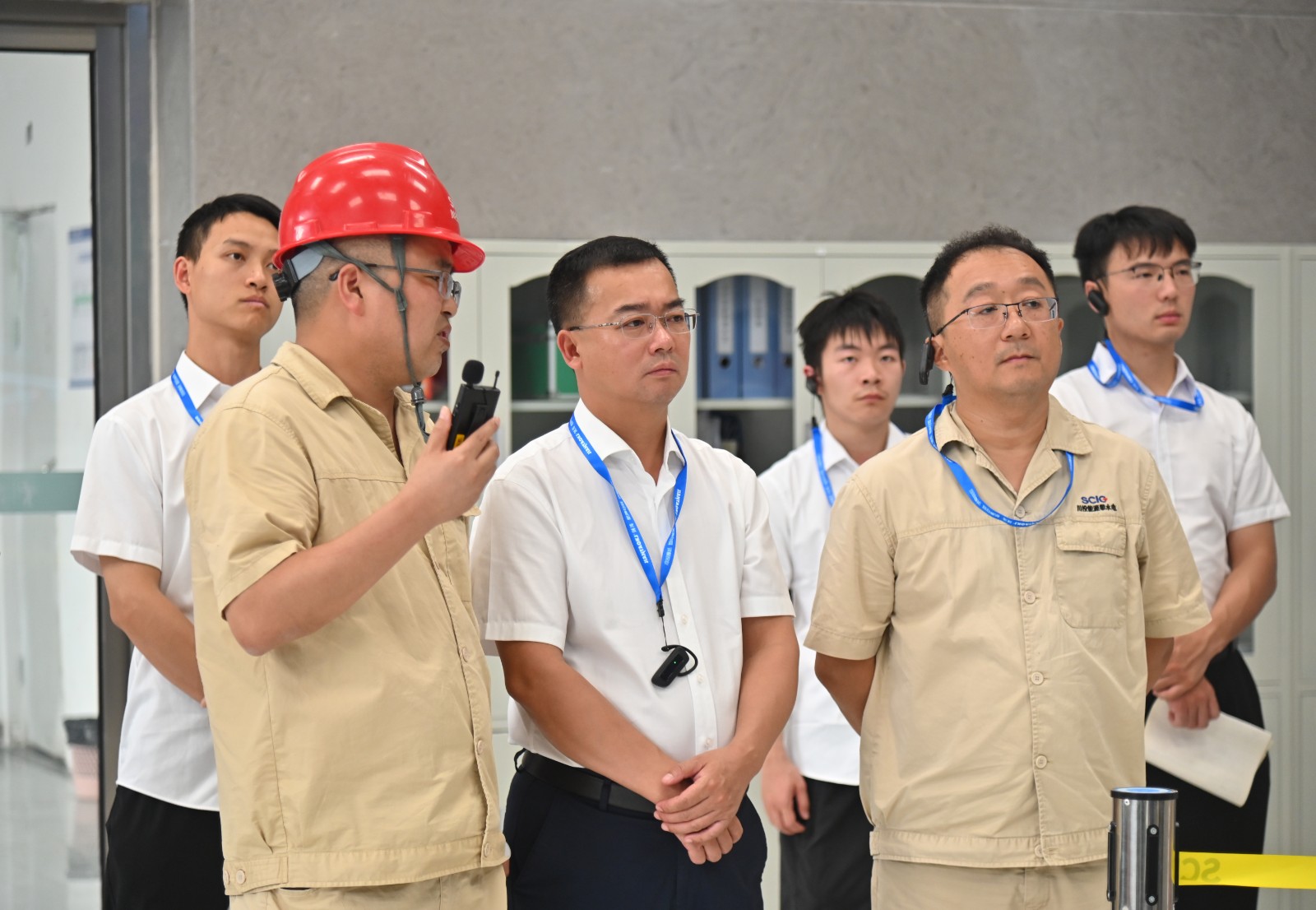 在銀江水電站黨建宣傳陣地和工地現場,鄧勇、嚴瑞平分別介紹了大黨建和工程建設、生產經營相關情況,雙方就黨建引領工程建設、設備安裝調試、水電站運營管理等內容進行了現場交流。