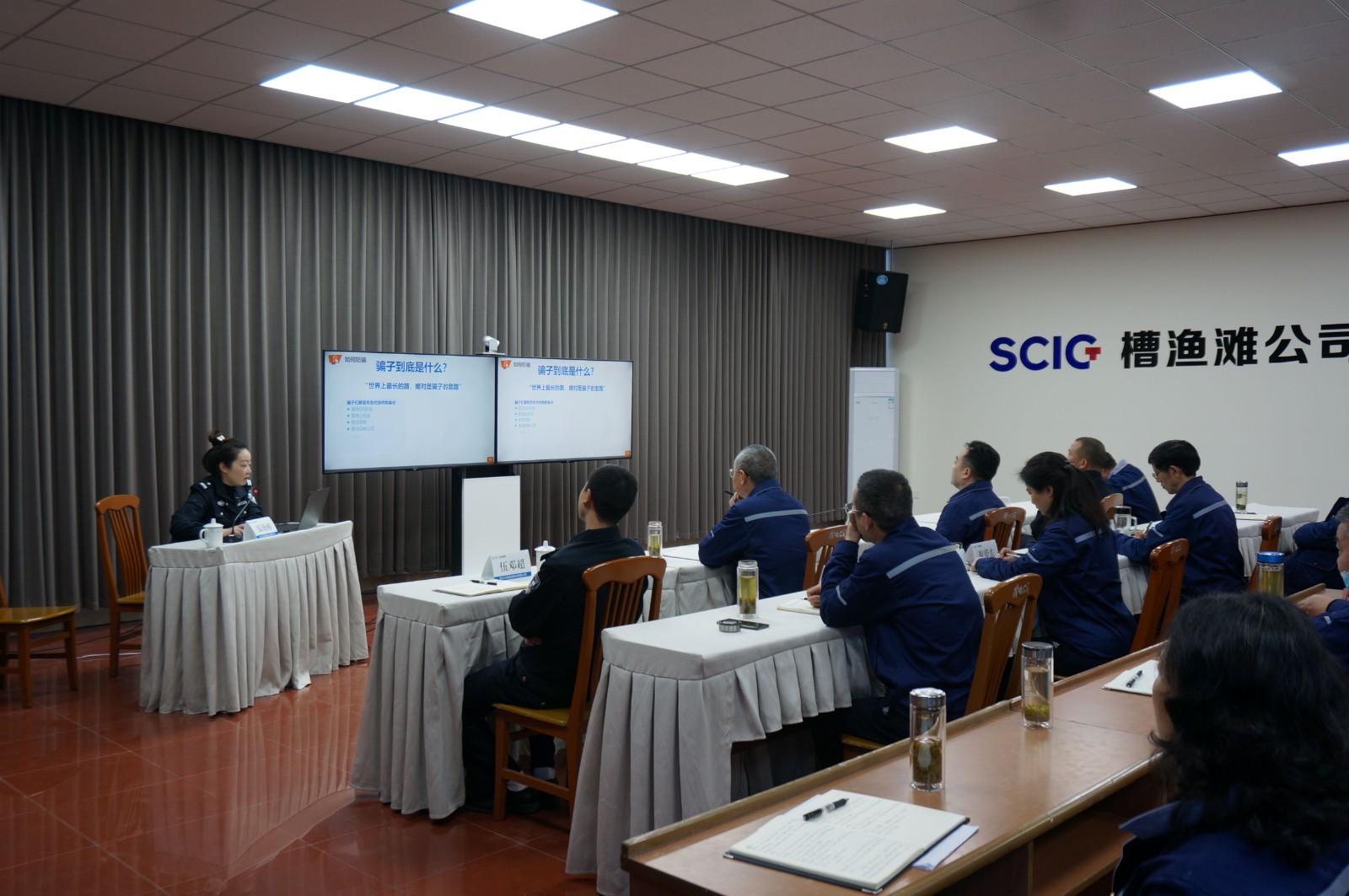 4月15日是“全民國家安全教育日”,一方面為宣傳貫徹習近平總書記對打擊電信網(wǎng)絡詐騙犯罪工作重要指示精神,另一方面也增強公司員工和駕駛員的交通安全意識,提高遵守交通法規(guī)的自覺性,川投能源槽漁灘公司特邀請洪雅縣公安局刑警大隊和交警大隊到公司進行預防電信網(wǎng)絡詐編培訓講座和交通安全法規(guī)培訓講座。公司黨委書記、董事長楊濤和在家的公司經(jīng)營班子成員、中層以上干部和所有財務人員共40余人參加這次培訓。